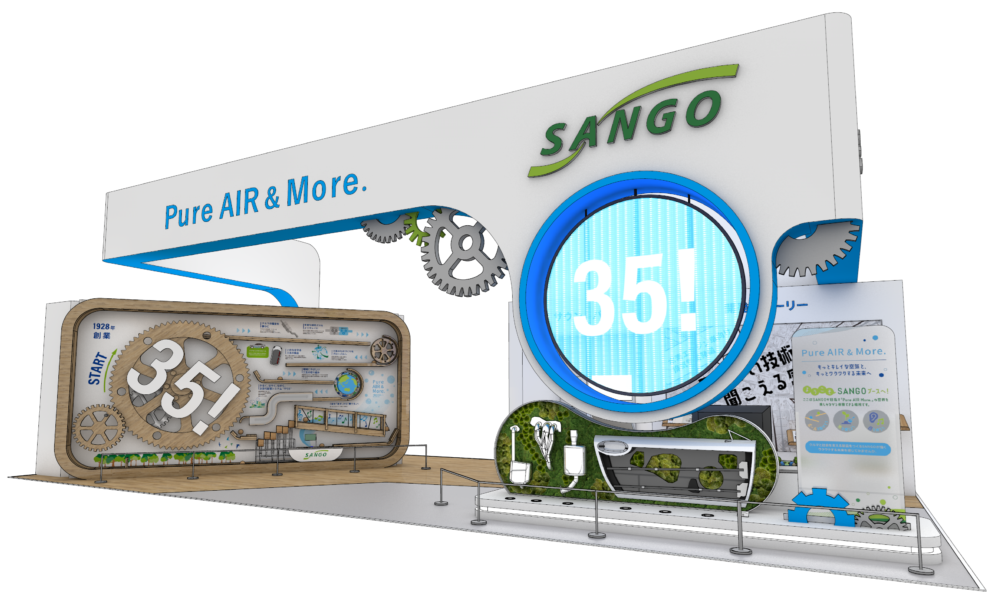 三五ブースでは、「Pure AIR AIR&More. もっとキレイな空気と、もっとワクワクする未来へ」をテーマとして、ボールを転がしたり、音を聞いたり、木を植えたりできる体験型展示を通して、クルマと社会を支えるものづくり、ネイチャーポジティブな取り組み、三五が描くワクワクする未来を紹介します。