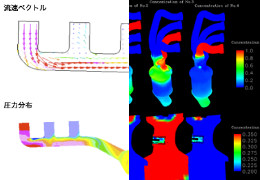 実際のガス流れを簡易モデルで可視化、流れ解析(CFD)との合せ込みを行い解析精度の向上に努めています。 ※Particle Image Velocimetry