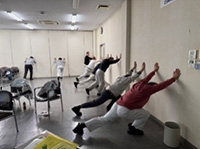 年々増加傾向にある転倒災害の予防を目的として、高年齢労働者を中心に実施しています。 テーマ:「自分の身体を知ってケアしよう」 体力チェックでご自分の身体の柔軟性を確認した上で、常日頃から簡単に実践できる運動を紹介。 ![]() ![]() |