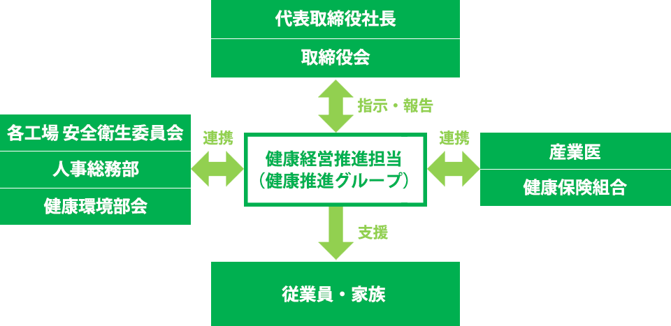 Well-Being実現、自己成長を通じた幸せ/働きがい、従業員エンゲージメント向上、全従業員が健康で働き続けることができる会社をめざし、健康経営戦略マップに則り健康経営に取り組んでいます。