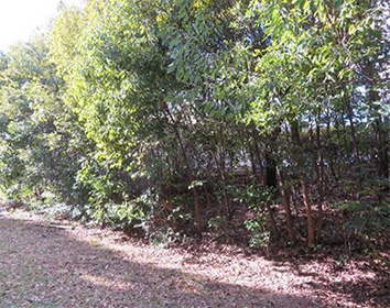 間伐とは、森林の成長段階に応じて、一部の樹木を伐採し、樹木密度を調整する作業です。適切に間引くことで、残された樹木の生長を促し、「生物多様性保全」、「地球環境保全」の機能が保たれます。間伐した伐採木は、ウッドチップ化し園路に使用したり、落ち葉の流出をとめる土留め丸太として再利用しています。